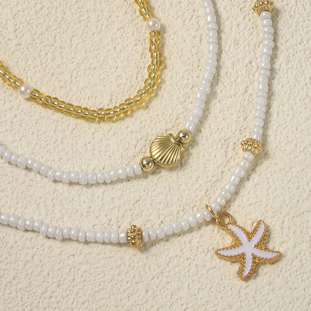 Colar Vintage Multicamadas com Miçangas, Conchas e Estrela-do-Mar – O acessório que transforma seu look com leveza, cor e vibração tropical.